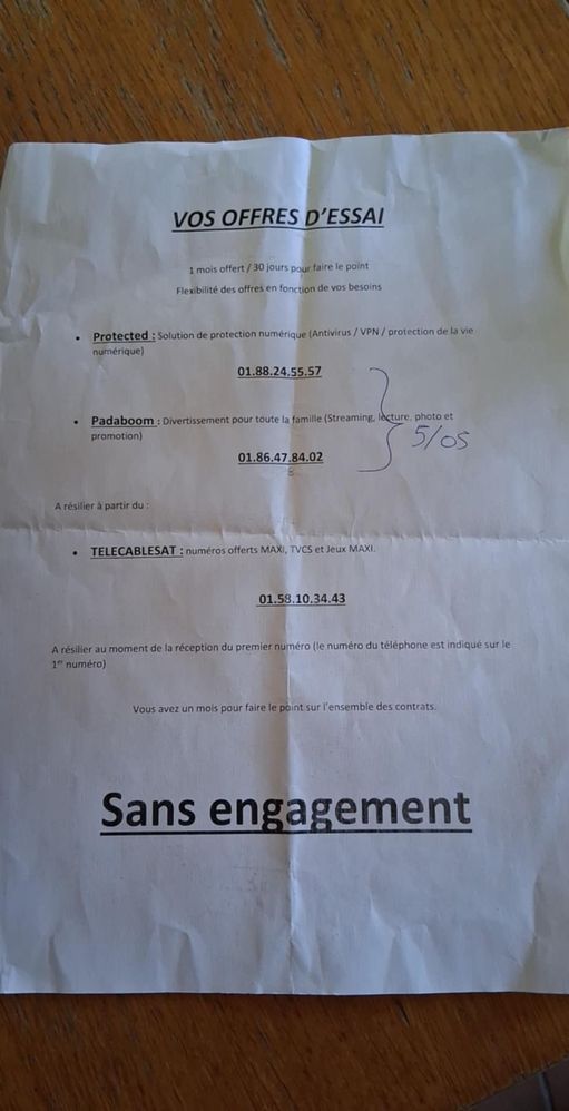 Il m'a donné une feuille papier avec les numéros des services client à rappeler pour désactiver (l'idée géniale étant bien sur que je perde la feuille ou que j'oublie...)