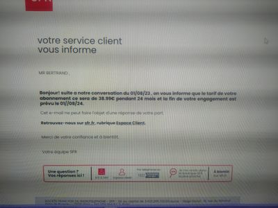 P.S. Par ailleurs, je doute très fort que ton mail de 2023 "certifie" un tarif jusqu'en 2025, je pense plutôt que (comme d'habitude pour les autres mails de confirmation de commande SFR) :