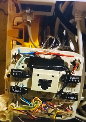 Je suppose que l'entrée de la box était reliée sur la sortie "Modem" du "filtre-maître" (juste au dessus du DTI)
