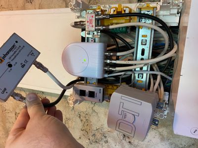 - ce type de coffret pour desservir plusieurs pièces (manifestement en réseau mais aussi en câblage coaxial valable pour la télévision) nécessite que la "source" (par exemple une box pour le réseau informatique, ou une antenne satellite pour le coaxial) viennent l'alimenter : j'imagine qu'avant, avec la présence de DTI qu'on voit en photo (réservé à l'ADSL) ta box était à proximité immédiate de ce coffret et reliée à lui pour l'alimenter