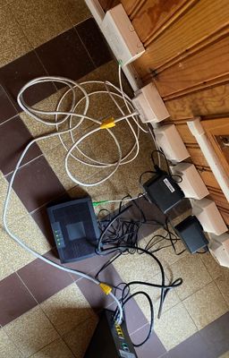 En revanche, comme déjà dit, on dirait qu'on devine en dessous de tout ça une fiche blanche RJ45, branchée dans une prise RJ45 donc. (Je l'ai entourée dans ta photo).