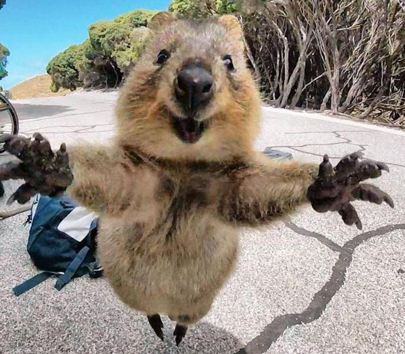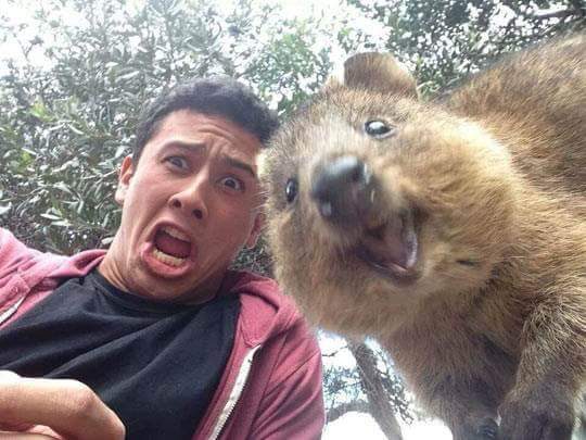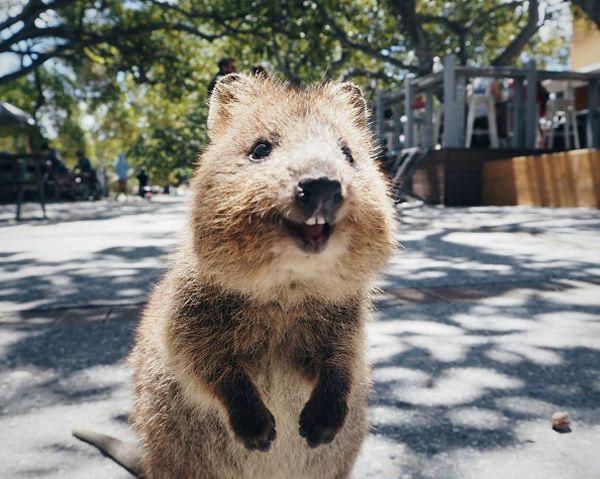 Le Quokka préfère du coup se déplacer en sautillant ou bien encore en marchant sur ses quatre pattes. Quand il ne pose pas auprès d'illustres inconnus pour faire l'idiot ![]()