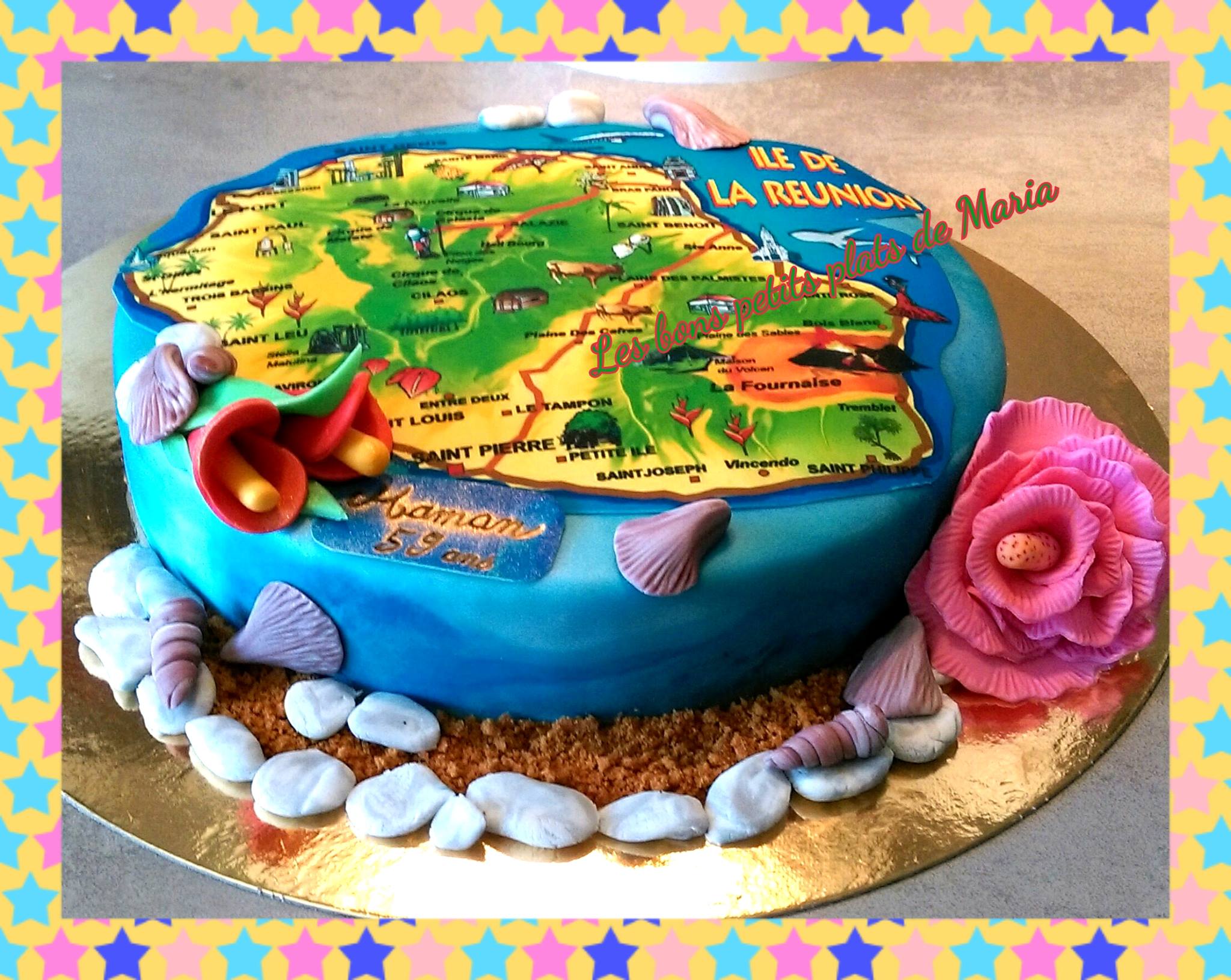 Bien vu pour l'île de la Réunion avec le volcan de la Fournaise et ces magnifiques gâteaux bien réalisées et très précis. Bonne idée pour faire une course d'orientation avec un gâteau en poche ( double intérêt : la précision de l'itinéraire et l'aspect nutritionnel).