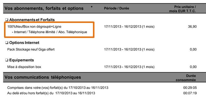 Exemple ci dessous avec mon vieil abonnement ex Tele2 repris par SFR (l'abonnement s'appelait encore NeufBox)