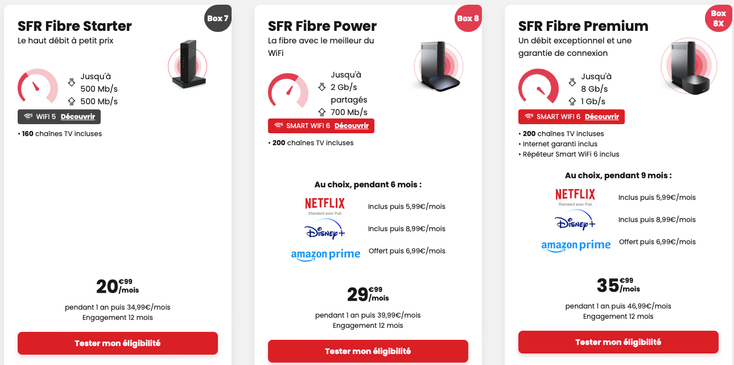 - c'est le cas de tous les contrats SFR, voir capture ci-dessous pour la fibre par exemple : ça augmente tout seul de 14€ pour STARTER, de 10€ pour POWER et de 11€ pour PREMIUM