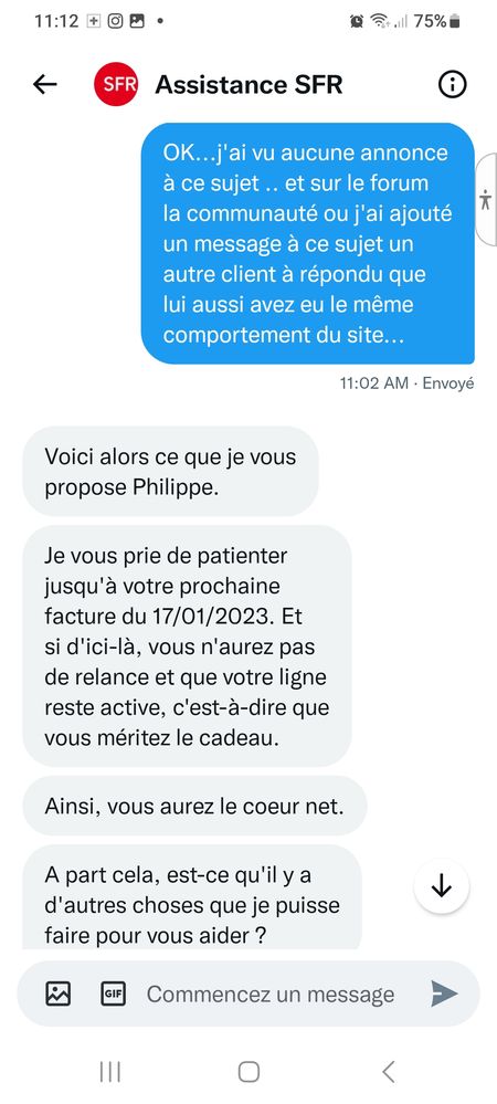 Bon je croyais en avoir fini avec mes échanges sur Twitter et alors que j'écris ce message j'ai reçu un autre message du SAV :