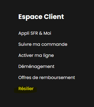 Compte tenu de la parution tardive du décret cette fonctionnalité sera disponible, pour les contrats SFR, à partir du 29 août 2023. Vous pourrez donc demander une résiliation en ligne depuis votre Espace Client directement à partir de cette date là.