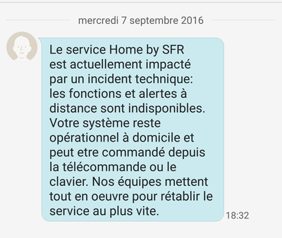 mais je suis étonné aucun responsable technique de sfr home by SFR NE DONNE aucune information à ce probléme , la durée de l 'arret du systeme de communication