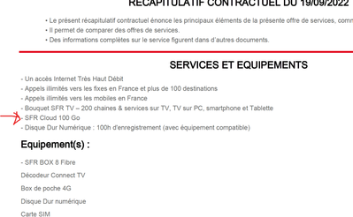 J'ai souscrit le 19/9 dernier une offre SFR Fibre POWER qui comprend en standard un certain nombre de services et d'équipements, et en particulier le stockage SFR Cloud 100 G0.