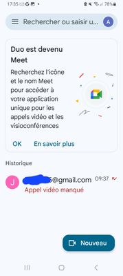- j'ai fait des recherches sur Internet : et j'ai vu que Duo était devenu Meet : et que cette application était une application de Google : utile pour les appels vidéos et les visioconférences... : je n'attends pas d'appels de ce genre...