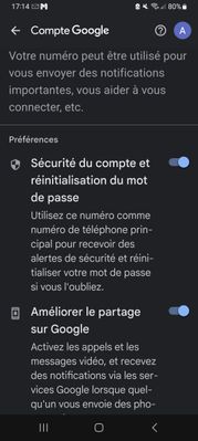 Améliorer le partage sur Google : Activer les appels et les messages vidéos, et recevez des notifications via les services Google lorsque quelqu'un vous envoie des photos et d'autres contenus sur ce numéro : là j'ai Désactivé (par rapport aux appels vidéos.. : et l'appel vidéo incompris du 9/11/23 au matin : d'où mon Post) !