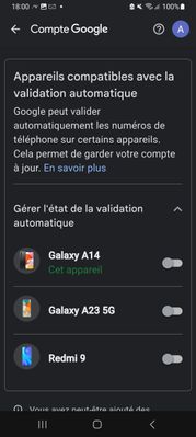 - et en-dessous : Appareils compatibles avec la validation automatique... : il y a mes 3 Appareils SFR ;