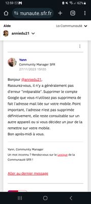 Voilà c'était un point au 19/11/23 concernant : n° de tél SFR et adresses e-mail dans compte Google ;