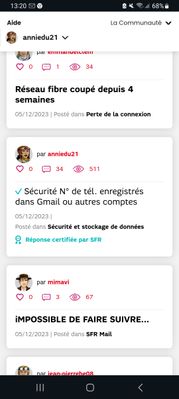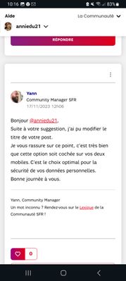 - il est bien modifié dans "On en parle sur la Communauté" >Réponses les plus récentes", ou "Réponses certifiées par SFR" : visibles par les utilisateurs ;