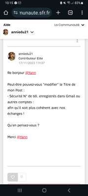 - Le Titre du Post n'est pas modifié (comme indiqué dans notre échange du 17/11/23) à : Sécurité N° de tél. enregistrés dans Gmail ou autres comptes