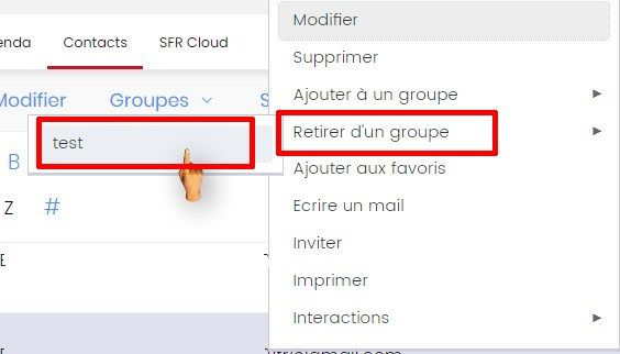 - cliquer sur le groupe duquel vous voulez retirer le contact (un contact peut être présent dans plusieurs groupes)