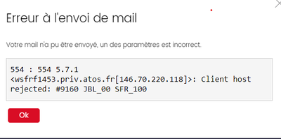 Concernant l’erreur "554 5.7.1" que vous avez rencontrée avec l’adresse "wsfrf1453.priv.atos.fr". Ceci indique généralement que votre email a été rejeté en raison de politiques de sécurité ou de filtrage sur le serveur de messagerie.