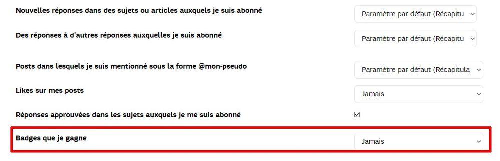 Concernant les mails pour badges reçus, il existe différents réglages dans vos paramètres (dont la réception de mail pour un nouveau badge)