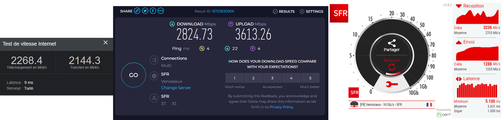 - SFR te fournit une connexion 8 Gbit/s de piètre qualité comparativement à d'autres clients comme ICI ou bien le résultat que vient de donner