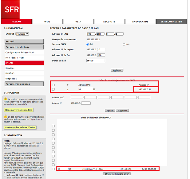 Au cas ou , as-tu essayer de désactiver le DHCP? On ne sais jamais..