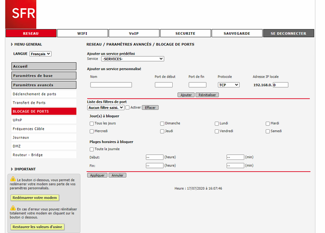 De toute façon je ne fais pas confiance dans la sécurité de toutes ces Box , Sinon il te resterais la solution du mode Bridge , n'aurais tu pas un vieux routeur qui traine , pour le transformer en DD-WRT (wiki.dd-wrt.com/wiki/index.php/Supported_Devices ) pour filtrer les ports?