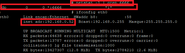 Mon raspberry a une ip fixe en 192.168.0.52 et ecoute sur le port 6666.